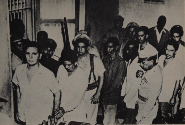 Insurgents in prison after the failed coup on July 26. Castro is in the front. From (Thomas, 1971)